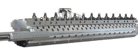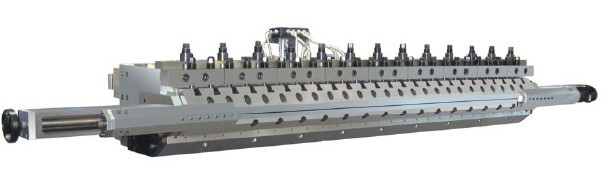 ABS/PMMA 复合洁具板模具采用标准衣架式流道设计,上模唇可调,下模唇可换及垂直节流棒调节装置,配ST型模唇挡块,能够在线调节制品宽幅。适用于生产PP,PS,ABS单层或双层板材,制品厚度0.8-8mm。