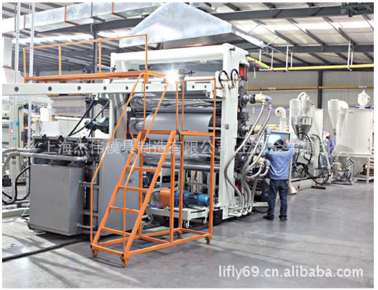 洁具板:采用PMMA-ABS共挤复合而成,既保留了亚克力板表面刚性和光泽的特点,又兼顾了ABS板材耐冲击的优点。具有成型好,耐高温、低温,耐磨、耐腐蚀及良好的机械加工性能。用于卫浴产品如:浴缸、淋浴房、蒸汽房、洗脸槽。冰箱板:分为ABS板,ABS无氟板,ABS抗菌板,HIPS板,HIPS高光泽复合板,HIPS抗141b复合板。具有极强的低温韧性、抗冲击、耐化学稳定性等良好性能。主要用于冰箱冰柜门胆、内胆、抽屉、接水盘、饮水机等。 ABS汽车(箱包)板:有皮纹板、亚光皮纹板、阻燃皮纹板等。具有良好的热塑性、阻燃性和高抗冲击性。用途:汽车、大巴内车顶、仪表板;座椅靠板、车门板、窗框、摩托车外壳;各种拉杆箱、行李箱、休闲包等箱包。 标准衣架式流道设计,上模唇可调,下模唇可换及垂直节流棒调节装置,配ST型模唇挡块,能够在线调节制品宽幅。适用于生产PP,PS,ABS单层或双层板材,制品厚度0.8-8mm。