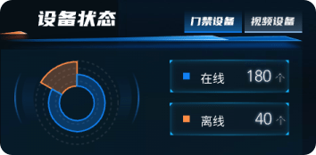 4. 设备状态:通过可视化图表实时直观显示各类安防设备(门禁设备、视频设备)的在线/离线状态,为设备及时运维提供数据保障