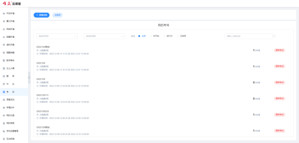 考试中心模块是管理员在平台上进行考试管理的核心工具,旨在提供便捷、高效的考试组织和监控功能。