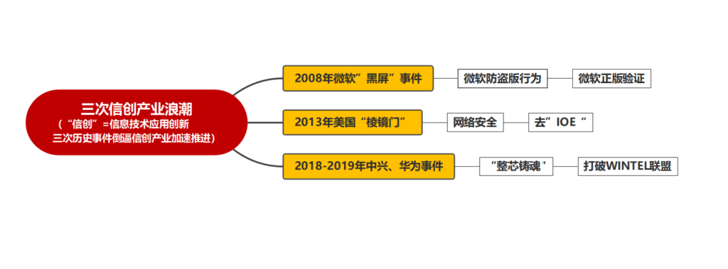 在国家战略层面上,通过多年的有序布局和系统性政策支持,我国的信域取得了显著进展。这一进步在基础软硬件方面表现得愈加明显,标志性的变革得以展现。在系列国家政策的积极引导下,我国信创产业经历了从2014年的千台为单元的终端,到2020年的数千万台终端的令人瞩目发展阶段。
