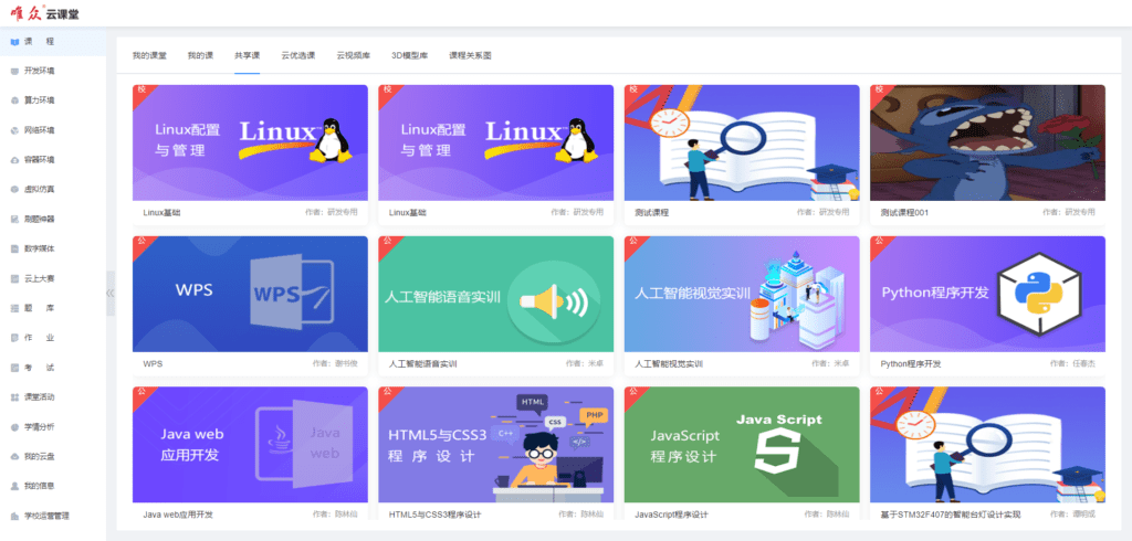 资源管理系统:用于集中管理实验室的硬件、软件和其他教学资源。