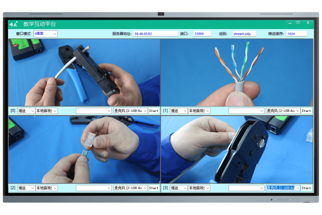 老师可同时兼顾多个小组实训过程,并对学生的实训过程进行点评批注和讲解,形成课程典型的案例;可时时直播,视频可快速跳转到节点的前15秒,直播时移功能,可帮助老师在不停止录制的情况亦可回顾刚才学生的操作。老师在开始实训前,可以播放实训系统带有的视频资源供学生们提前学习,也支持教师接入U盘播放视频课件。
