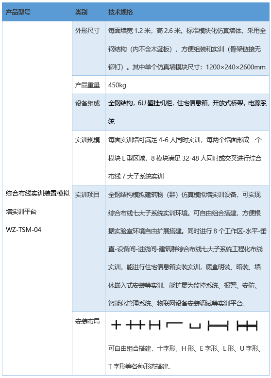 3)能够模拟三层楼宇结构、结合配套机柜,可模拟综合布线系统七大子系统真实工程环境