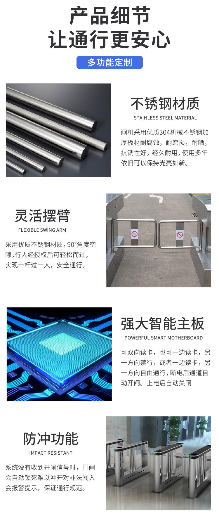 信息显示:多种指示显示功能(通道出入指示灯、LED信息显示屏(选配)、状态灯)。