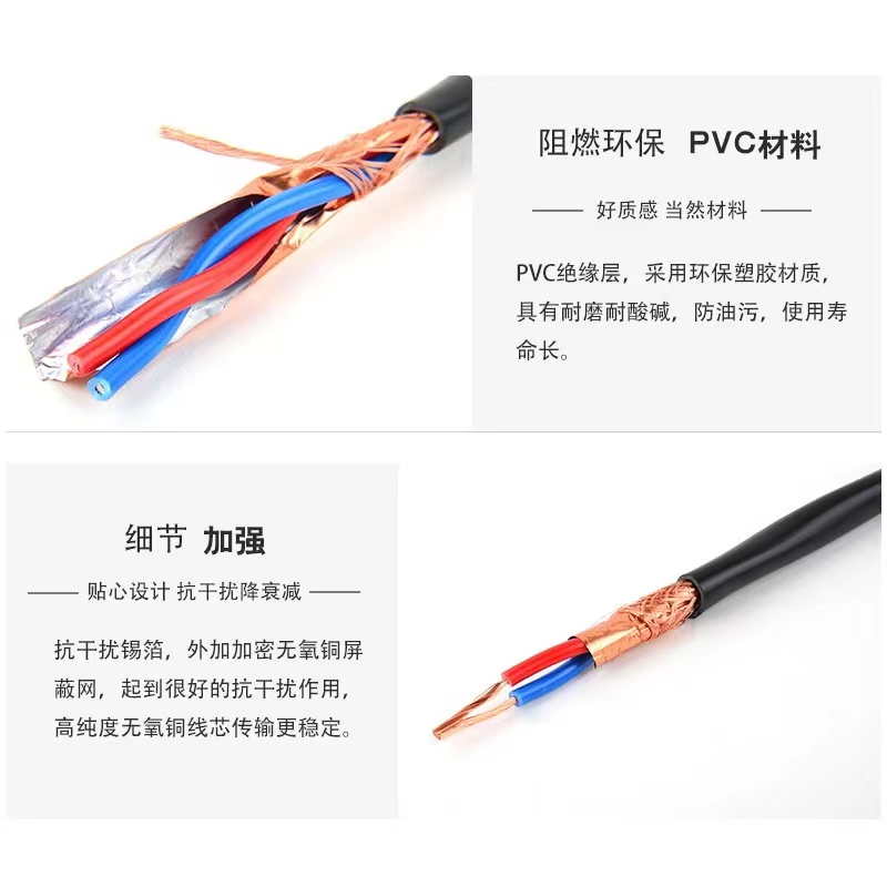 ?双层屏蔽?:铝箔绕包(覆盖率 ≥85%) 镀锡铜丝编织(编织密度 ≥80%),电磁干扰舒缓 ≥60dB(1MHz 频段);
