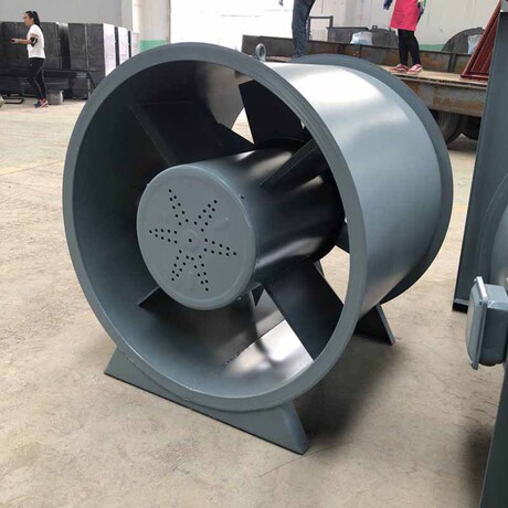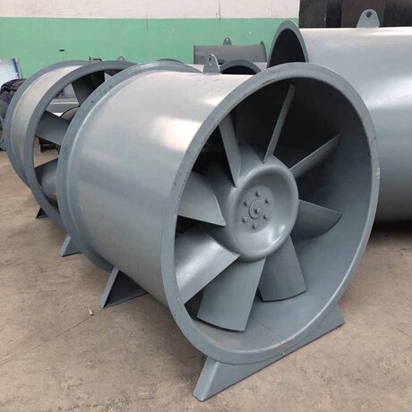 在工矿企业和高级民用建筑的送排风系统中可代替低压离心风机或代替高压轴流风机而不需要大量消声措施。 凯亿双速混流风机 低噪声工业消防排烟风机