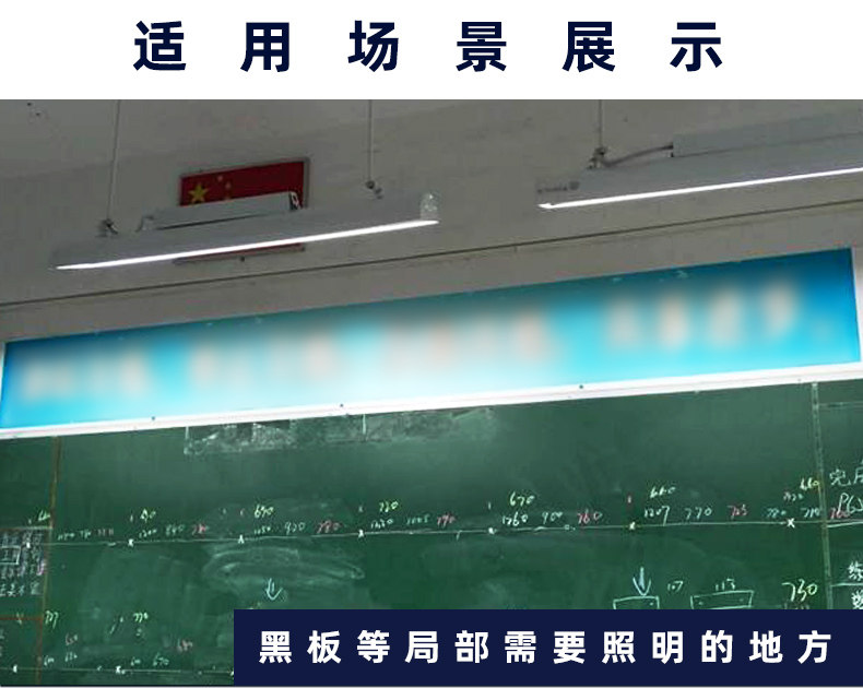 三雄极光的LED黑板灯科学依据光学原理进行配光,针对学校教室照明特点进行“偏光专利透镜设计”,经过专业照明设计,满足健康光环境标准,照度及均匀度优于国家标准,教室眩光大大降低,后排学生看黑板不容易被顶上灯光干扰,保护学生视力;整改后灯具无频闪危害,不会轻易造成学生眼睛用眼疲劳;提供优质的光环境,保护视力健康,提高教学质量