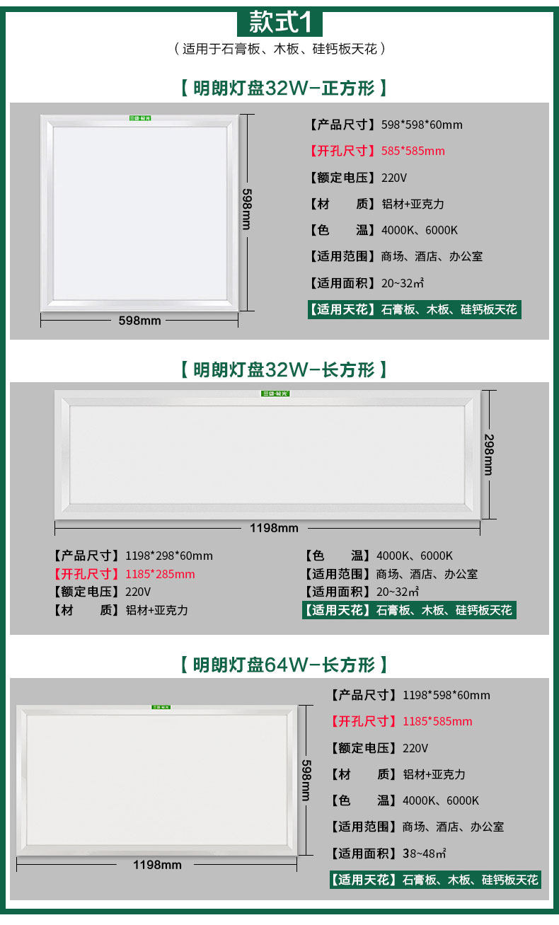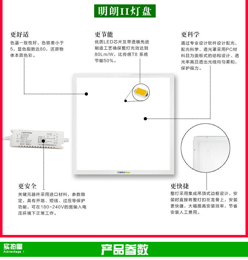 三雄极光明朗LED灯盘 集成吊顶石膏天花灯