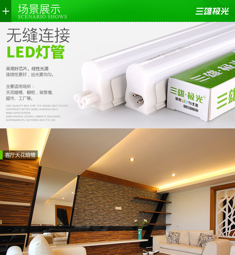 三雄极光自成立以来一直致力于研发、生产、推广高品质的绿色照明产品,主要产品有T5灯管、T5支架、T8灯管、LED灯、照明灯、展柜灯、吸顶灯、庭院灯、卧室灯、客厅灯、应急灯、护眼台灯、磁吸导轨灯、投光灯、餐吊灯、景观灯、线条灯、led灯具、灯泡、壁灯、吊灯、灯带、台灯、筒灯、射灯、灯饰等,为客户提供全方位的照明解决方案和服务,是中国极具综合竞争实力的照明品牌之一。涉及户外照明、办公照明、工业照明、酒店照明、智能照明、校园照明、机场照明、品牌店照明、地铁照明、家居照明、绿化照明、景观亮化、品牌店照明、轨道交通照明领域。