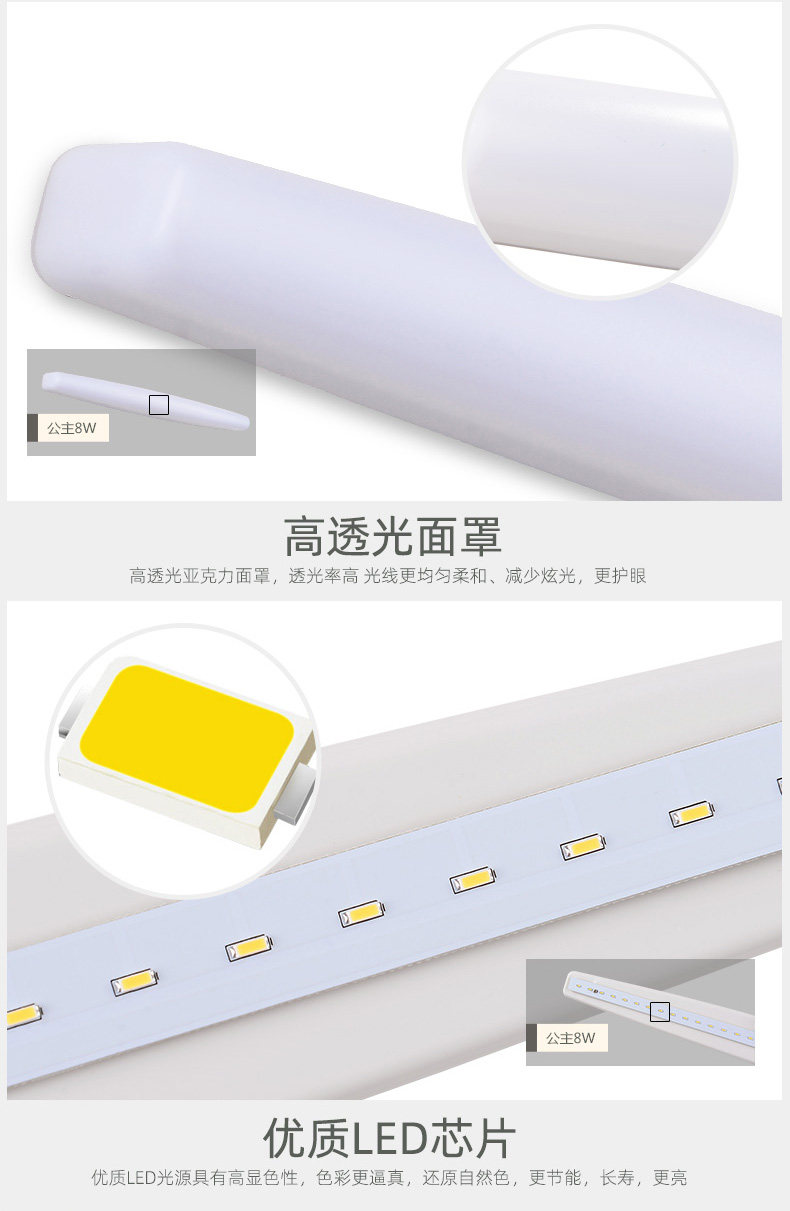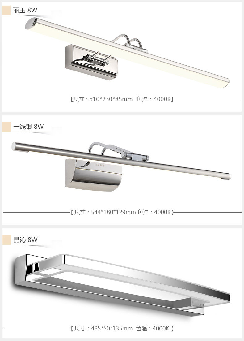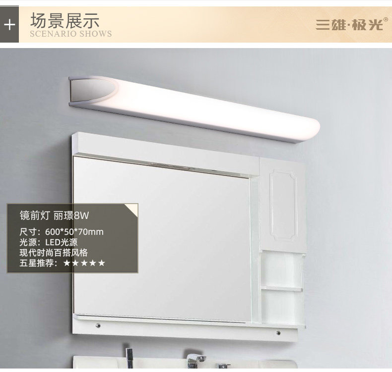 三雄极光 LED镜前灯 丽璟8w梳妆灯 卫生间浴室防水化妆灯