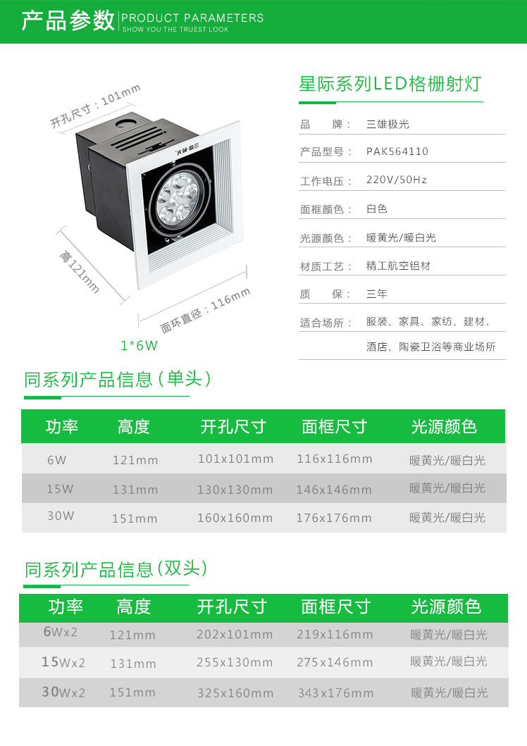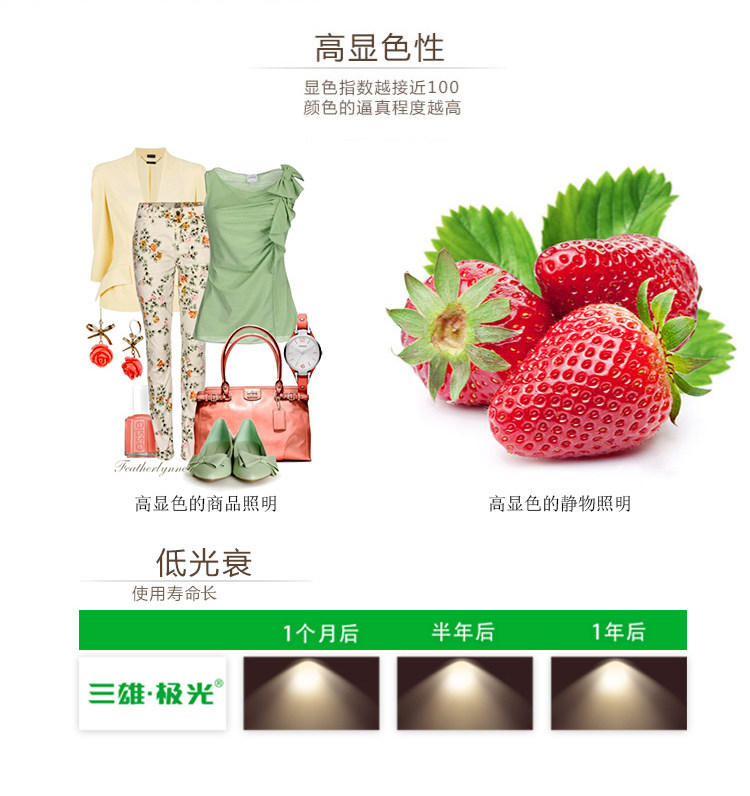 1.SMD光源,光效高,显色性好(Ra>80),色温一致性好。