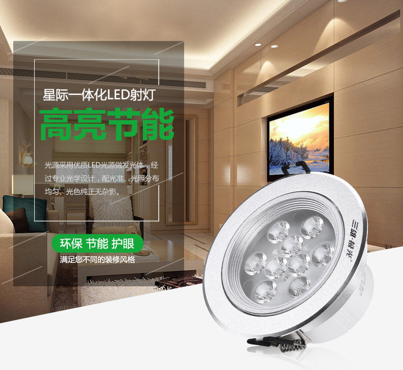 三雄极光星际LED天花射灯 一体化嵌入式客厅背景墙灯