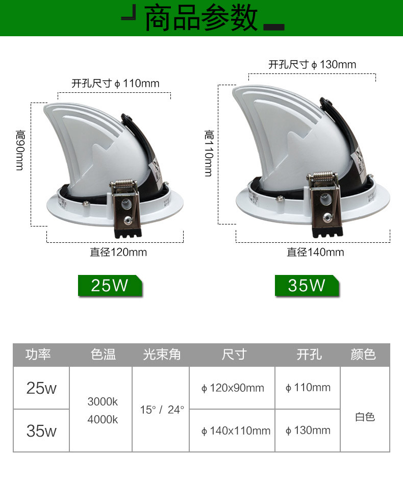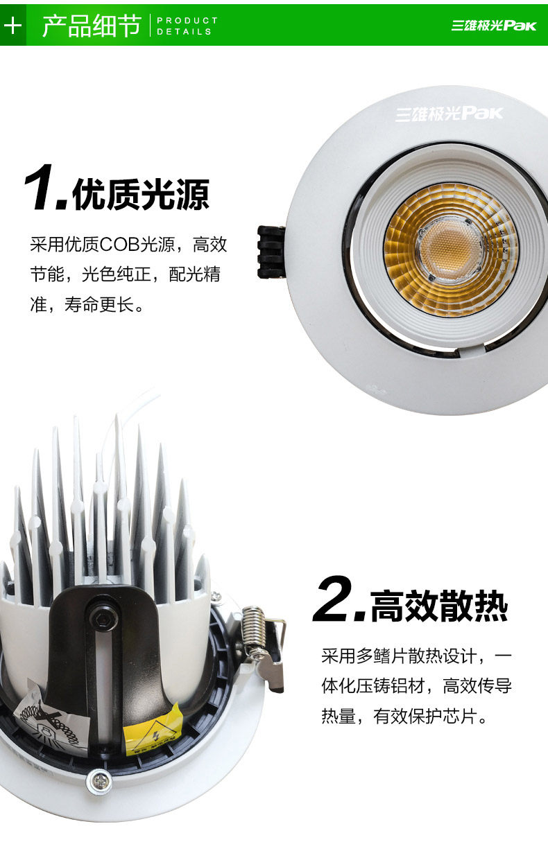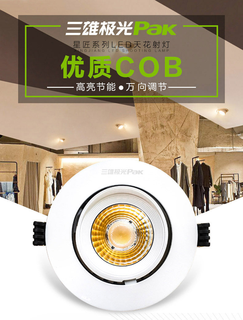 25W三雄极光LED射灯 星匠COB集成天花灯 嵌入可调式象鼻射灯