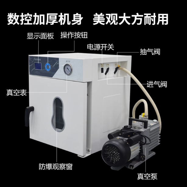 智能真空干燥箱在科研、工业生产和实验室中具有广泛的应用,能够有效提高干燥效率并保护样品质量。选择合适的设备并正确操作,可以显著提升实验或生产的效率和可靠性。真空环境通过真空泵降低箱内气压,减少氧气含量,避免样品氧化或变质;温度控制配备较好的温控系统,可在真空环境下实现均匀加热;干燥效率高在低气压下,水分蒸发速度加快,干燥效率显著提高;多功能性可用于干燥、烘烤、固化、脱气等多种工艺;安全可靠配备真空度监控、过温保护、漏电保护等安全功能,内胆材质采用不锈钢(SUS304),耐腐蚀、易清洁;加热方式是电热管加热或硅胶加热板;容积规格从几十升到几百升不等(可根据需求定制)。