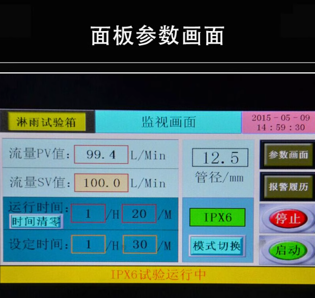 淋雨试验箱的用途主要是测试产品在淋雨的气候环境下的贮存、运输和使用时的性能,该设备主要用于对电工电子产品、灯具、电柜、电器元件、汽车、摩托车及其零部件等产品在模拟淋雨的气候条件下,对产品的物理及其它相关性能进行测试。主要具有模拟降雨,通过喷头模拟不同强度的降雨;控制参数,可调节降雨强度、水压、温度等;多种测试模式,支持不同角度和方向的淋雨测试等功能。广泛运用于电子产品:测试手机、手表等设备的防水性能;汽车行业,评估车灯、雨刷等部件的防水效果;家电行业,检测洗衣机、冰箱等家电的防水能力;灯具行业,验证户外灯具的防水性能。由箱体,通常为不锈钢材质,耐腐蚀;喷头系统,模拟降雨,数量和布局可调;水泵系统,提供稳定水压;控制系统,用于调节测试参数,如时间、水压等组成部分。