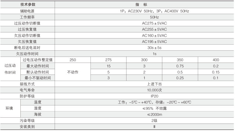 ASJ10-GQ系列自复式过欠压保护器(以下简称ASJ),适用于单相交流电压230V或三相电压400V,频率50Hz,额定工作电流至63A及以下的用户或负载。由中性线故障引起的单相或三相线路过、欠电压时,保护器对用电设备进行保护。