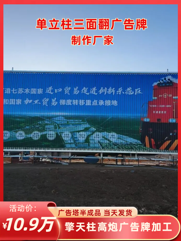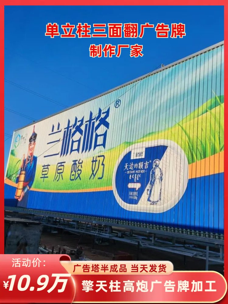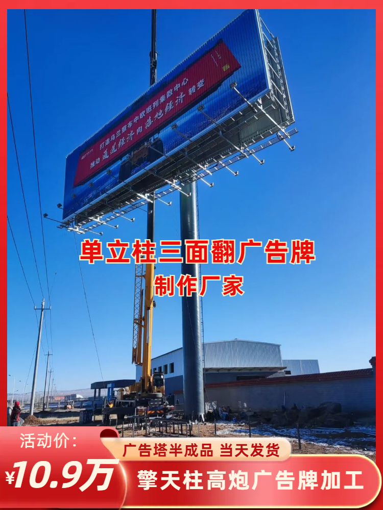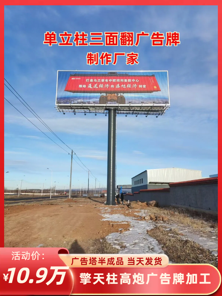 广告公司是集研发,生产,销售,安装为一体的高炮广告牌制作,单立柱广告牌施工,高炮广告牌安装,三面翻广告牌销售等系列产品的大型生产企业。本地区较大的户外广告制作厂家,企业家协会会员单位。二十三年的制作施工经验,4000平米实体性厂房,月销量较高打破三十座,质保八年。合作过的广告公司千余家。性强,制作速度快,交工及时。施工流程化,质量保证,钢材大省批量流水线生产,价格是我们较大的优势。——欢迎前来考察订购。