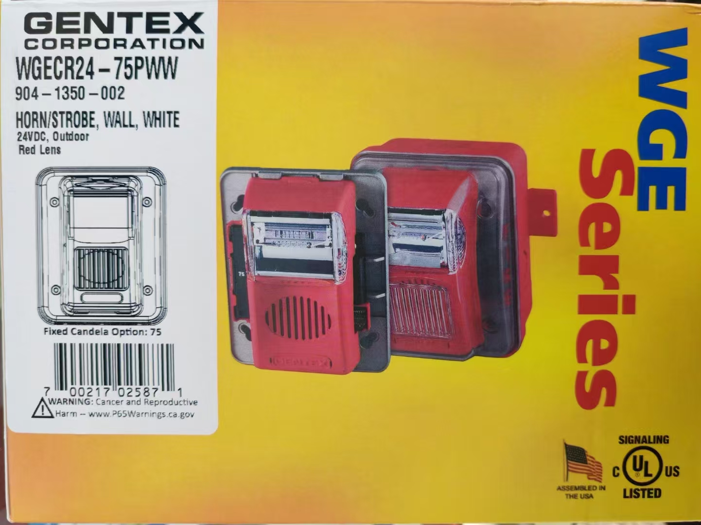 WGES / WGEC声光灯系列电器是ANSI/UL 464, ANSI/UL 1638, CAN/ULC S525和 /或 CAN/ULC S526列出的。