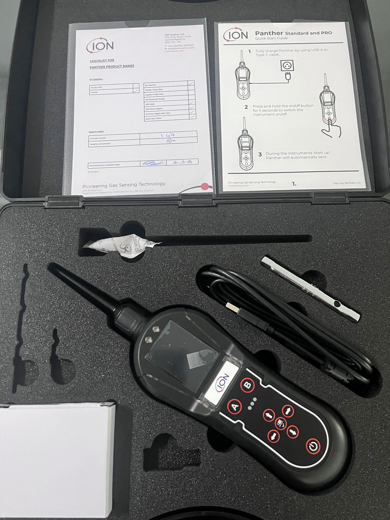 Panther 仪器是由 ION Science Limited 根据符合 ISO 9001:2015 标准的质量体系制造的
