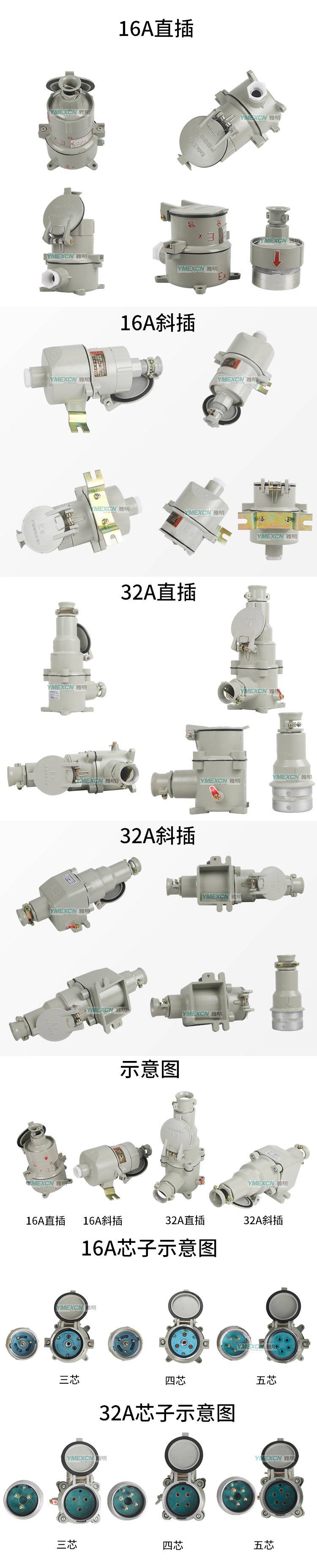 防爆插销连接器 矿用防爆插座五芯直插三相无火花技术参数