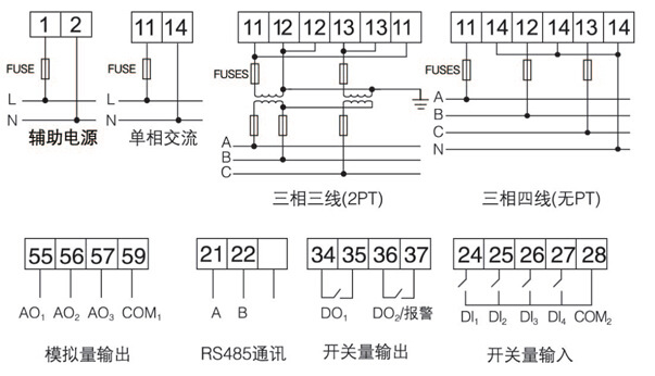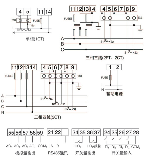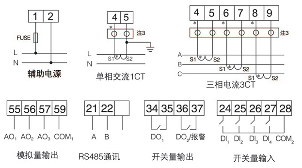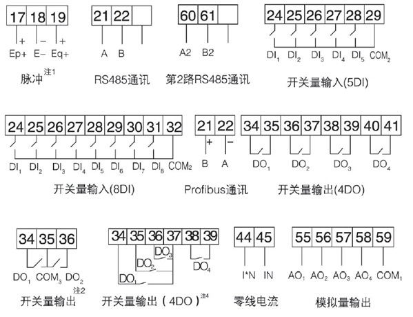 注1:适用于单相电能表及开关量为8DI/2DO的场合;