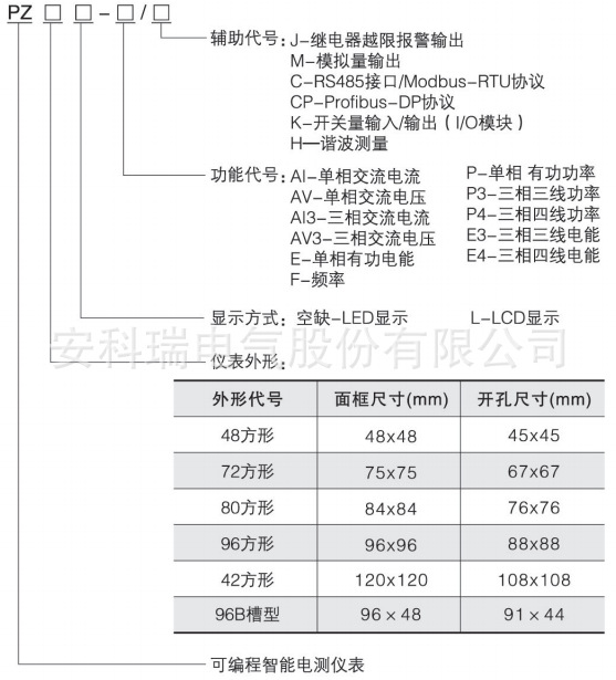 3、PZ96(L)-AI、AI3、AV、AV3、F多可带3路模拟量输出,PZ96(L)-P3(4)、E3(4)多可带2路模拟量输出。