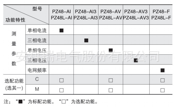(1)“■”为标配功能,“□”为选配功能;