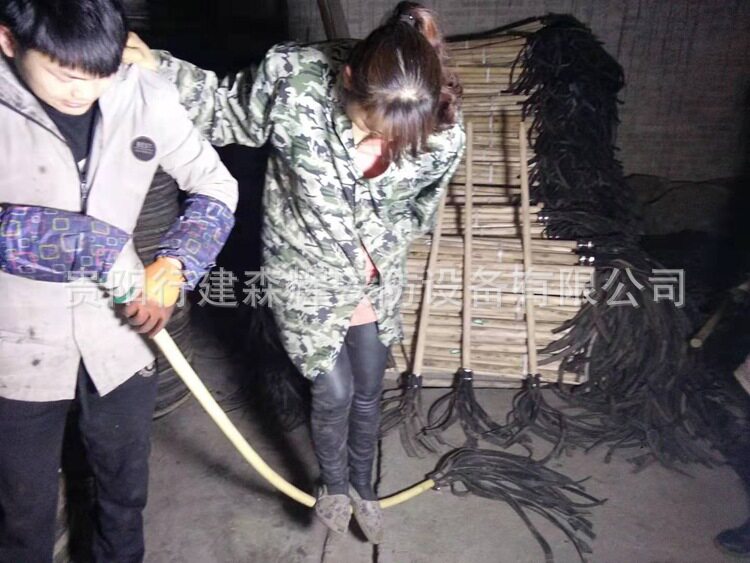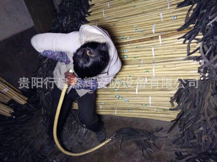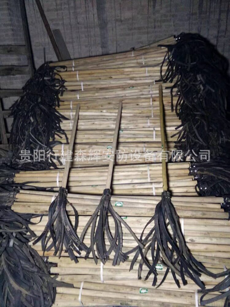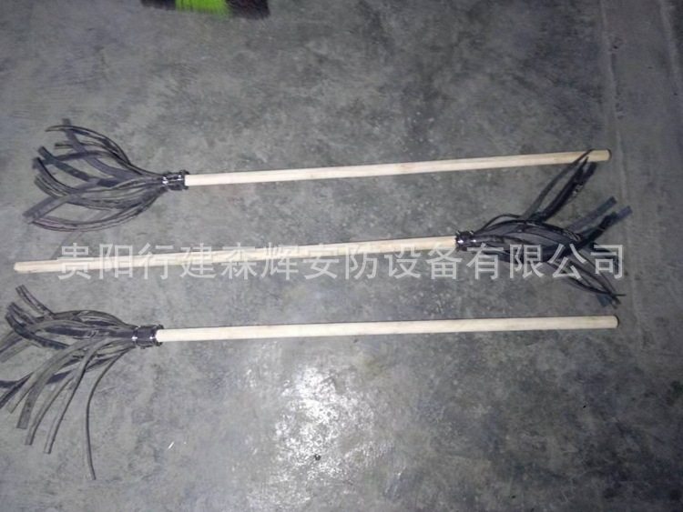 此款产品采用木棍和胶条组成,是山林火灾灭火武器。木杆直径(3+0.5)厘米,长度(130+5厘米);扑火橡胶条:内有加强棉线(传送带),厚度为0.25厘米左右,条数为15-18条,橡胶条宽度约为1.8-2厘米,长度55CM;2号灭火工具又叫森林灭火拖把,消防打火把等,这种“拖把”其貌不扬,由木棍和15条以上胶皮带组成,木棍长约1.2米胶皮带的长度不足半米。灭火时,民兵战士手握拖把“把柄”,即木棍子,扑打时,将胶带打在火场上。打入火堆的胶皮带是发散式的,打击面广,可以将火焰打灭,也可以将着火的木柴打散,有助于减少火势。