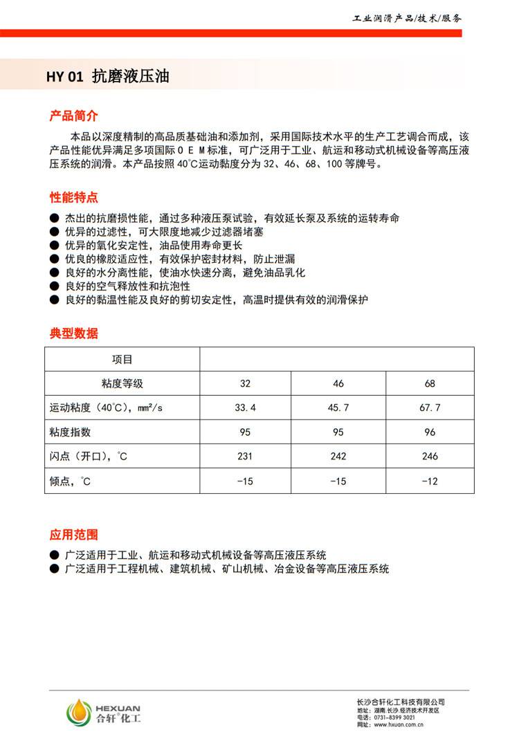 合轩46号抗磨液压油选用基础油和添加剂组成,适用于各高压高速的齿轮泵、柱塞泵、叶片泵、空压机、真空泵、轴承等液压系统和循环系统,长寿命安全润滑与防护。