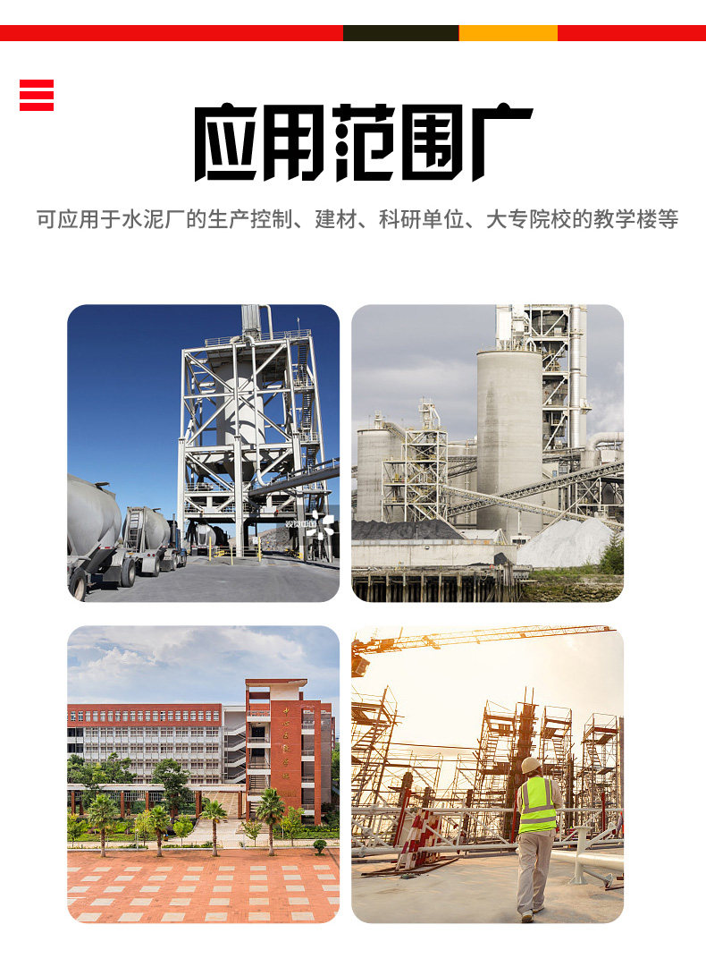 可应用于水泥厂的生产控制、建材、科研单 位、大专院校的教学楼等。