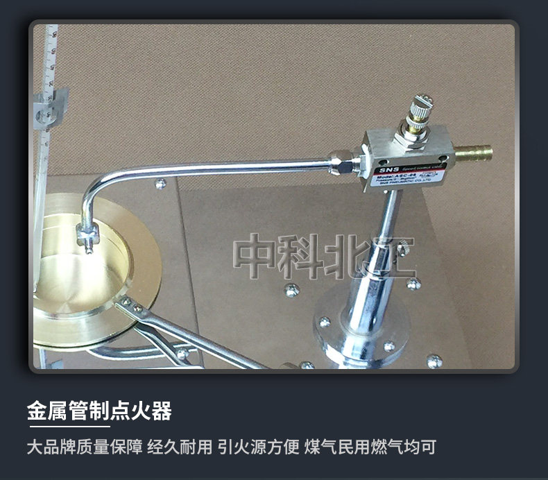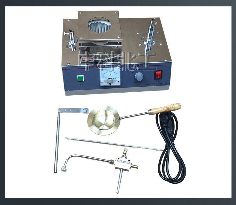 9、把油杯放在电炉上,调节好点火装置和温度计的高度,调节好火焰的大小,根据标准的规定调节电位器,即调节升温速度,随后就可以进行点火试验