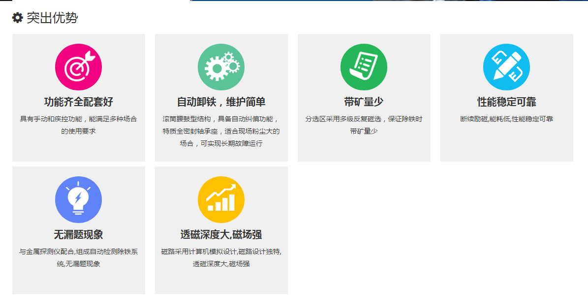 适用于原矿石、烧结矿、球团矿、块矿等磁性矿石输送皮带上除铁。HTK磁性矿除铁系统依靠其独特的磁路设计对所选物料进行多次分离,从而将铁磁性杂物以带矿量少的方式从磁性矿物料中吸除,达到保护后续破碎设备的目的。