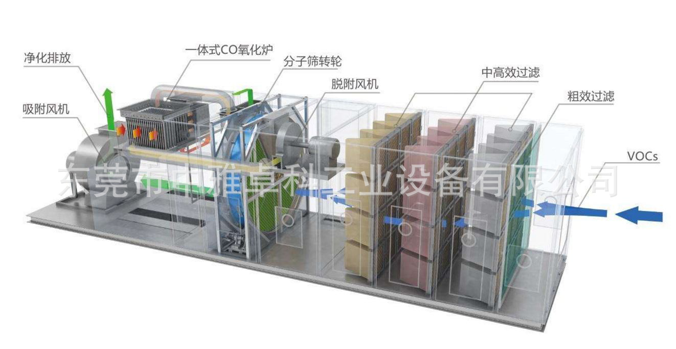 活性炭吸附脱附-催化燃烧 工作原理: