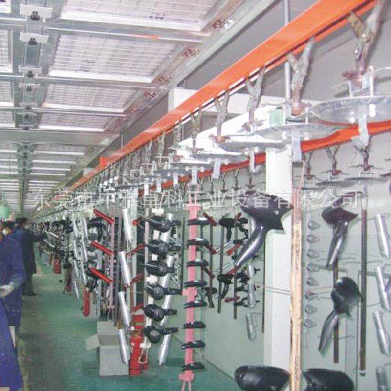 涂装生产线主要由前处理电泳线(电泳漆是最早开发的水性涂料,它的主要特点是涂装效率高,经济安全,污染少,可实现完全自动化管理。涂装电泳漆之前需要进行预处理)、密封底涂线、中涂线、面涂线、精修线及其烘干系统组成。涂装生产线全线工件输送系统采用空中悬挂和地面滑橇相结合的机械化输送方式,运行平稳、快速便捷,采用PLC可控编程,根据生产工艺的实际要求编程控制——实行现场总线中心监控,分区自动实现转接运行。