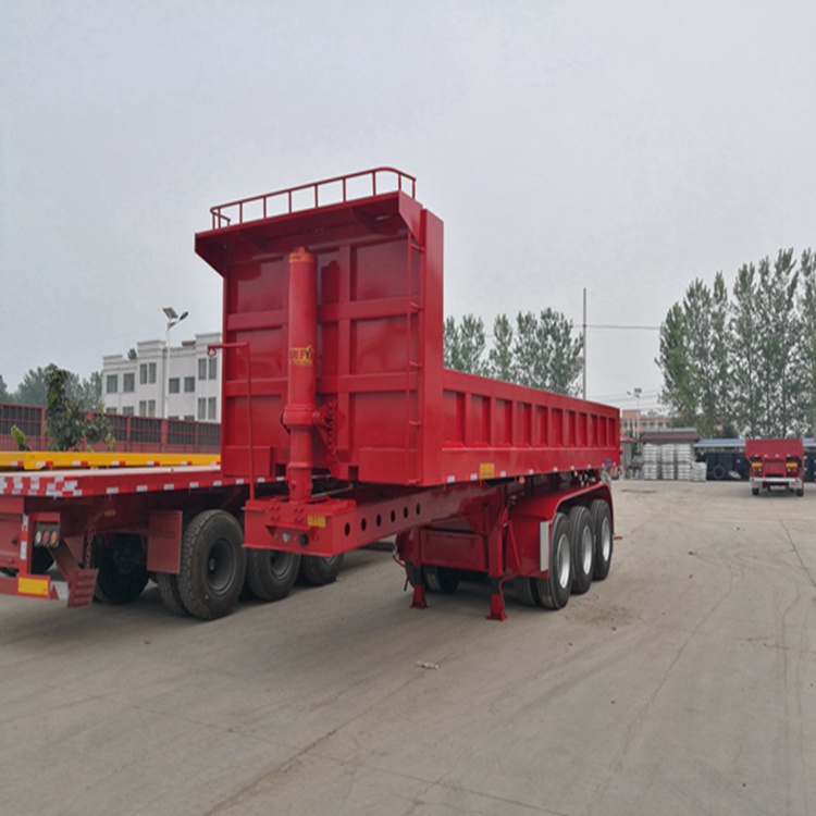 后翻自卸半挂车车架和车厢纵梁均采用锰板焊接而成,货箱有簸箕和矩形两种。具有强度高、举升力强、刚度、韧性好,承载能力强,不发生变形。