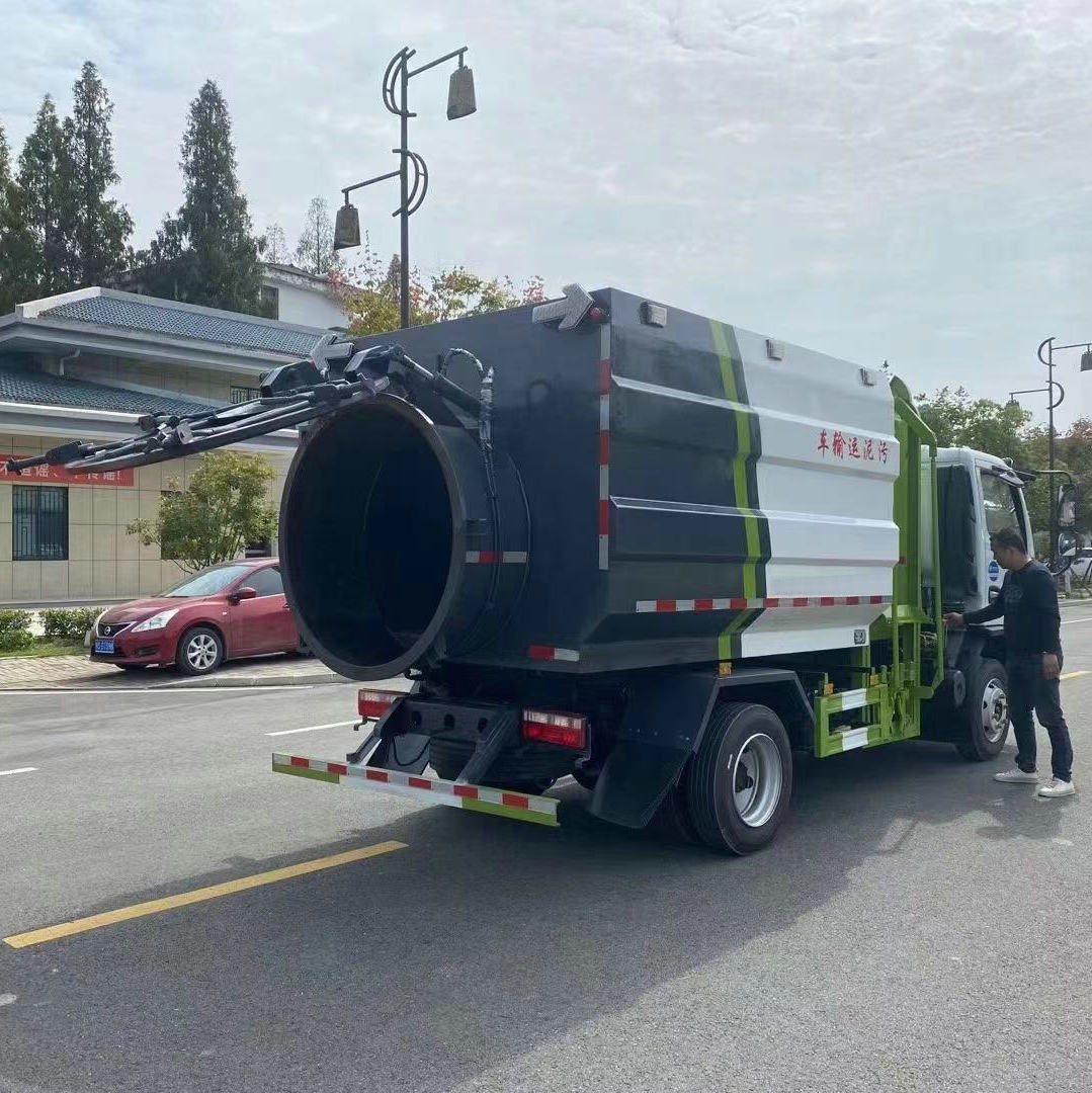 2.箱体采用边3MM底4MM优质碳钢板制作,容积5-7立方,带液压油缸,后盖液压开启自卸料,可挂铁桶或塑料垃圾桶(240升), 240升垃圾桶。