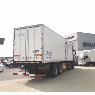 随底盘选装仅高度不同的驾驶室,高顶驾驶室顶部气喇叭为选装件,驾驶室前角扰流板为选装件,选装后处理隔热罩,选装驾驶室顶部"东风商用车"企业标识;选装单油箱或双油箱或双腔油箱,选装底盘布置;厢体顶部封闭,不可开启,货厢选装单开门,双开门和不开门型式;选装其它厂家功率相当的制冷机组,选装前置式,内置式,底置式制冷机组;选装尾板,尾板质量为550kg,尾板收起状态时的水平长度为295mm;选装尾板时仅选用截面尺寸为Φ121的后防护,后防护材质:Q235:连接方式:焊接:离地高度470mm;侧防护:材料Q235,螺栓连接;选装后下部防护:材质为Q235,连接方式螺栓连接,断面尺寸120×60mm,离地高度440mm、460mm、480mm.材质为DL510,连接方式螺栓连接,断面尺寸120×80mm,离地高度440mm、460mm、480mm.安装具有卫星定位功能的行驶记录仪;装有ABS,ABS型号/生产厂家:ABS 8/东科克诺尔商用车制动系统(十堰)有限公司,ABS-E 4S/4M/威伯科汽车控制系统(中国)有限公司;选装限速装置,限速89km/h;发动机DDi11E465-60对应油耗申报值37.1L/100km;该车型可选装ETC车载装置.