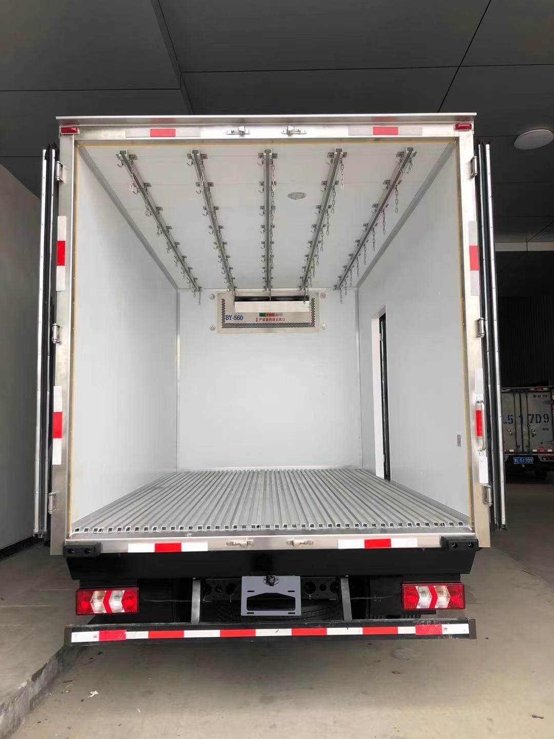 车厢顶部封闭,不可开启.选装新结构的导流罩.选装导流罩.选装功率相当的其它型号的制冷机组.选装不开门货箱.选装肉挂结构.选装改前脸的驾驶室.侧防护及后下部防护装置的材质为R13钢,连接方式为螺栓连接,后部防护离地高度360mm,断面尺寸为100×50mm.油耗值(L/100km)11.2对应发动机CA4DD1-16E6,F2.8NS6B156.生产厂家/型号:1.浙江万安科技股份有限公司/VIE ABS-II.2.广州瑞立科密汽车电子股份有限公司/CM4YK.该车型可选装ETC车载装置.