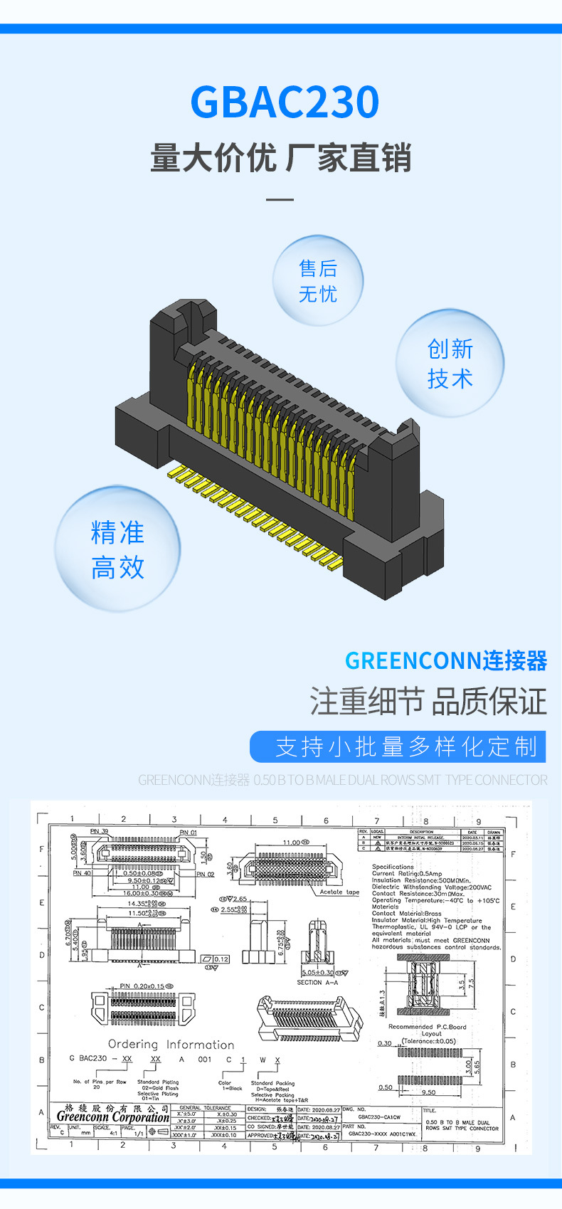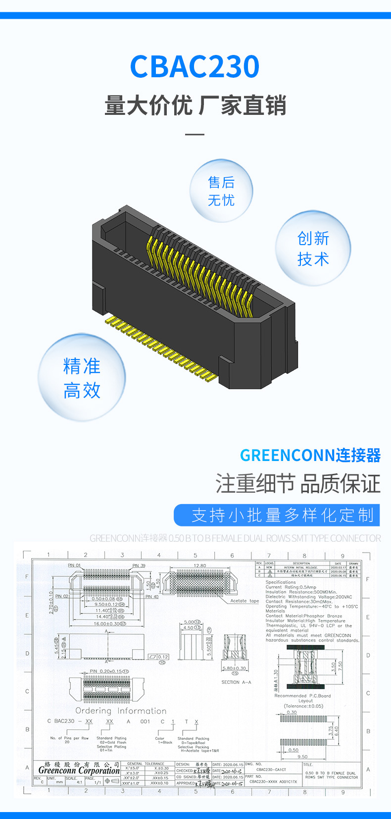 Greenconn连接器间距 0.80板对板连接器SMT型态公座连接器