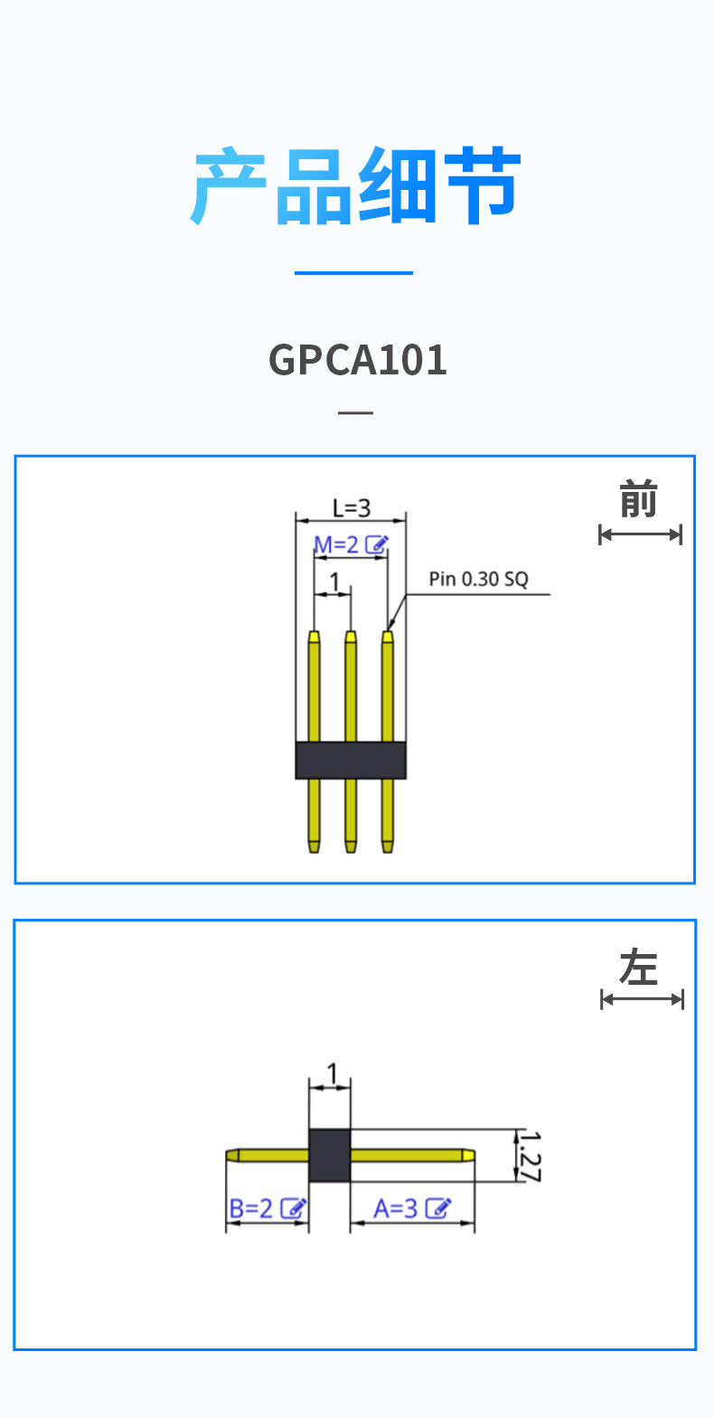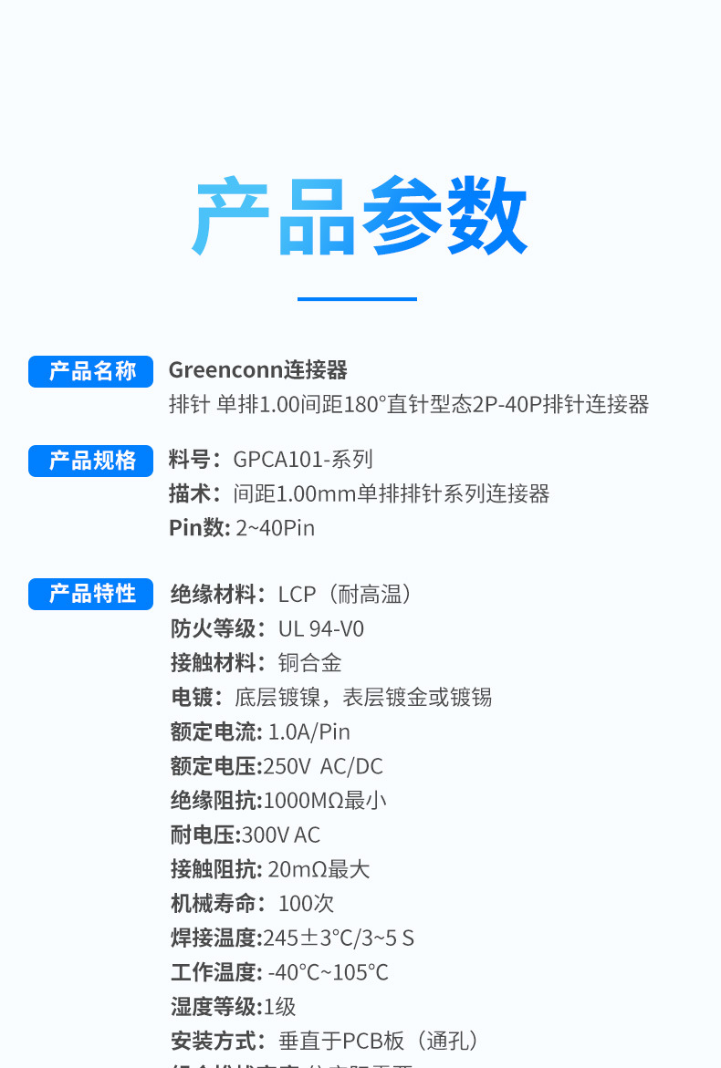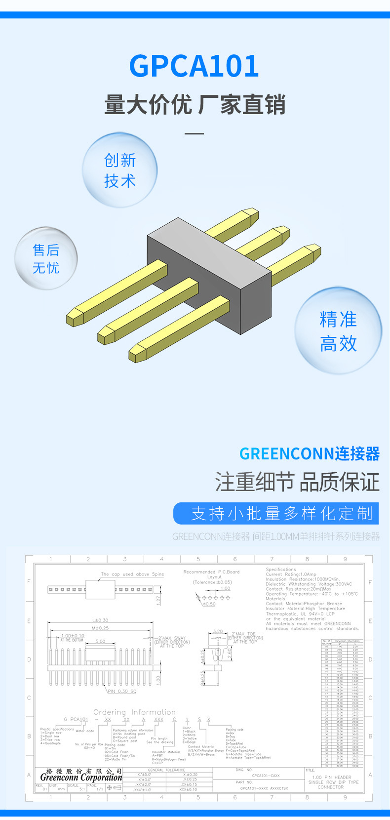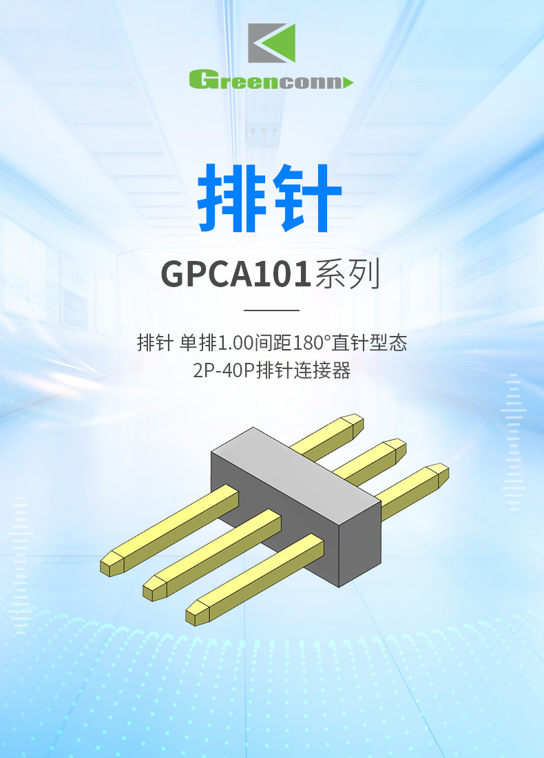 Greenconn连接器排针单排1.00间距直针型态2P-40P排针连接器