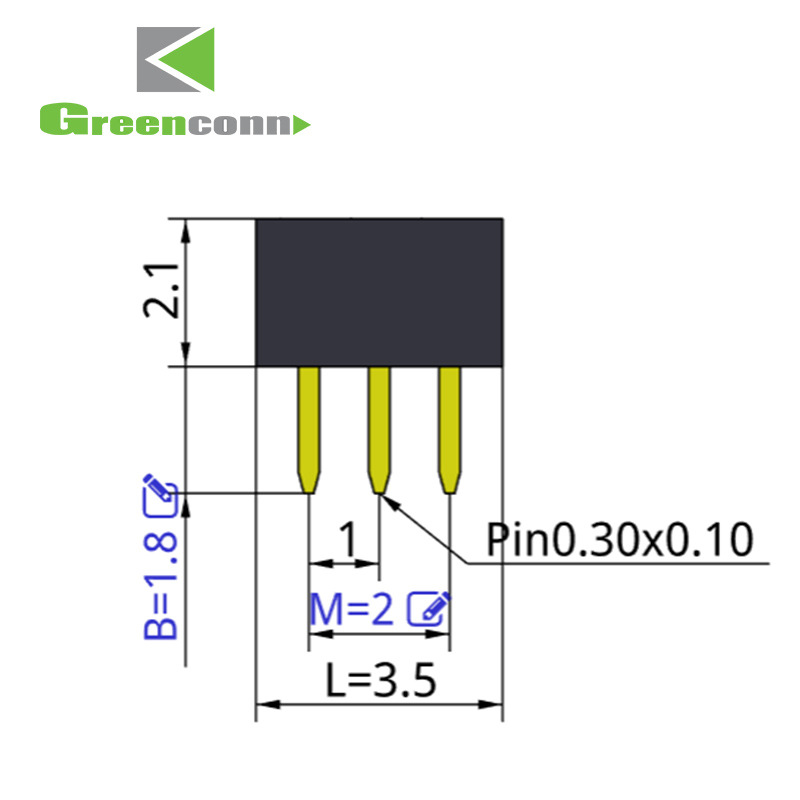 Greenconn连接器间距1.00排母单排DIP型2-40Pin垂直PCB排母连接器