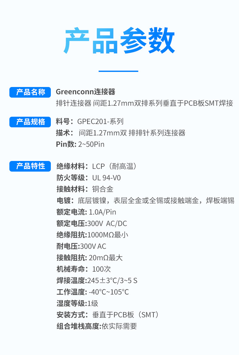 Greenconn连接器间距0.80毫米双排排母连接器SMT型排母系列连接器