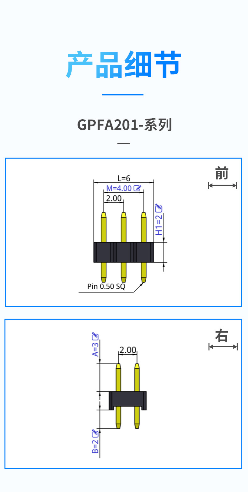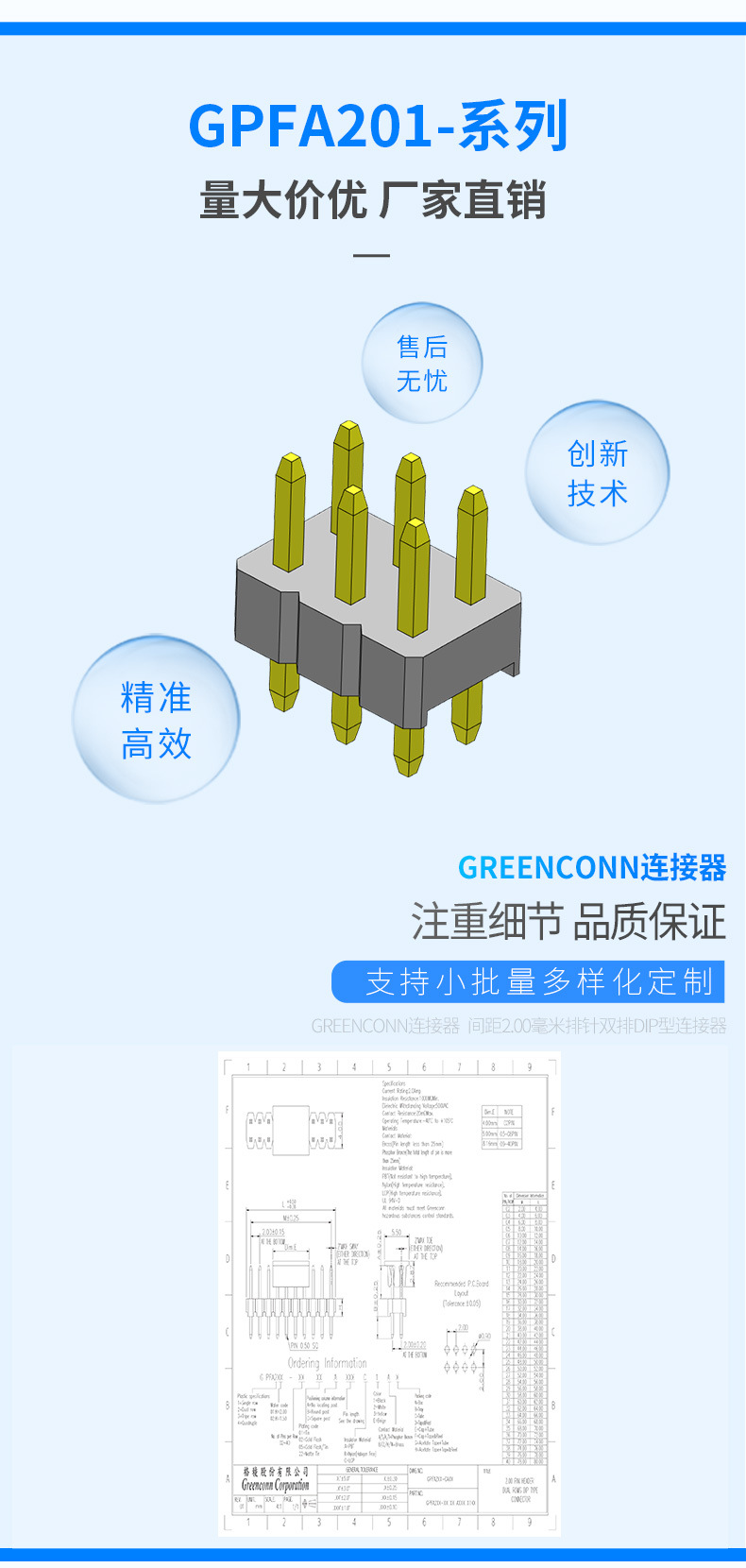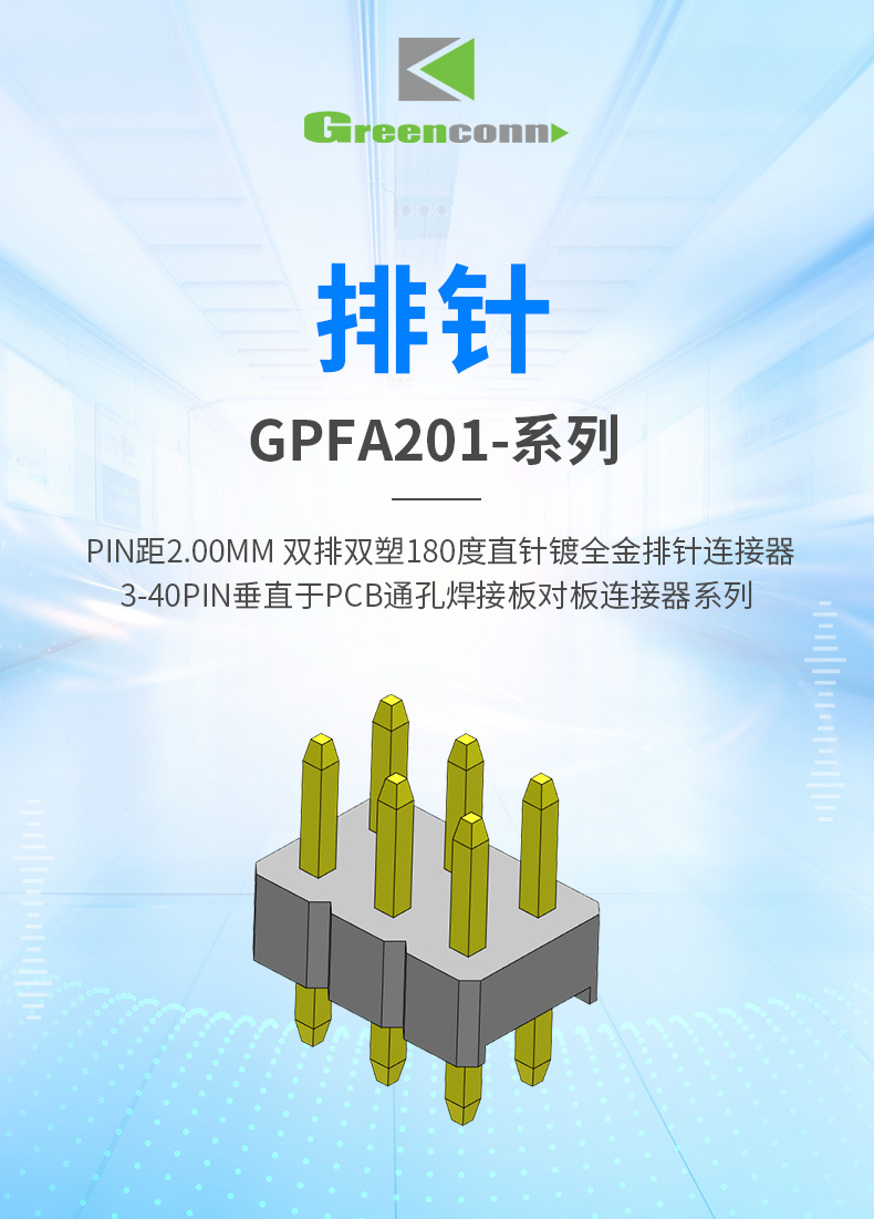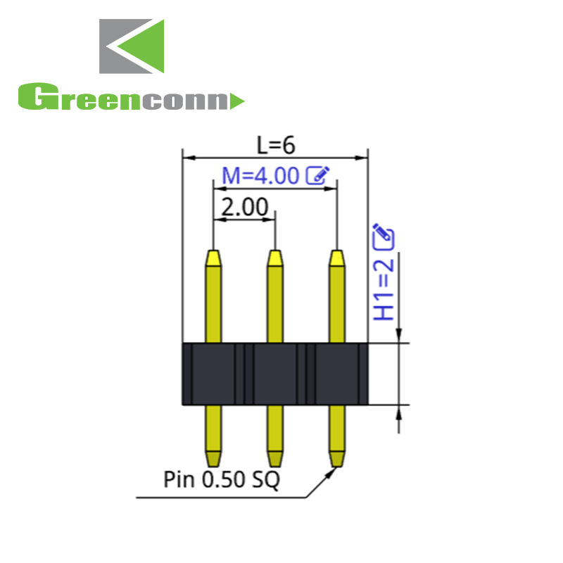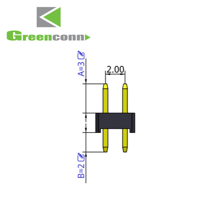 Greenconn连接器间距2.00mm双排单塑 排针DIP型态直针排针连接器