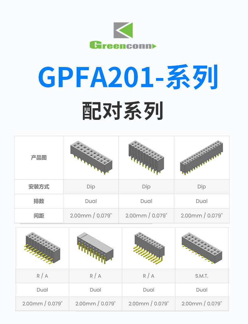 Greenconn连接器间距0.80毫米双排排母连接器SMT型排母系列连接器