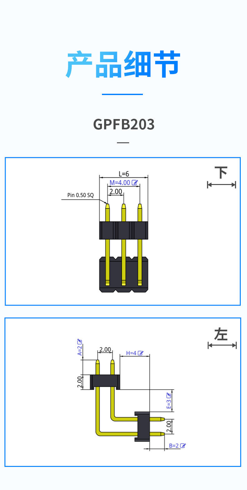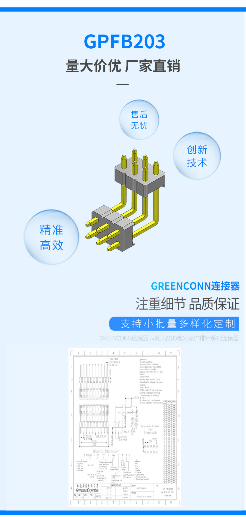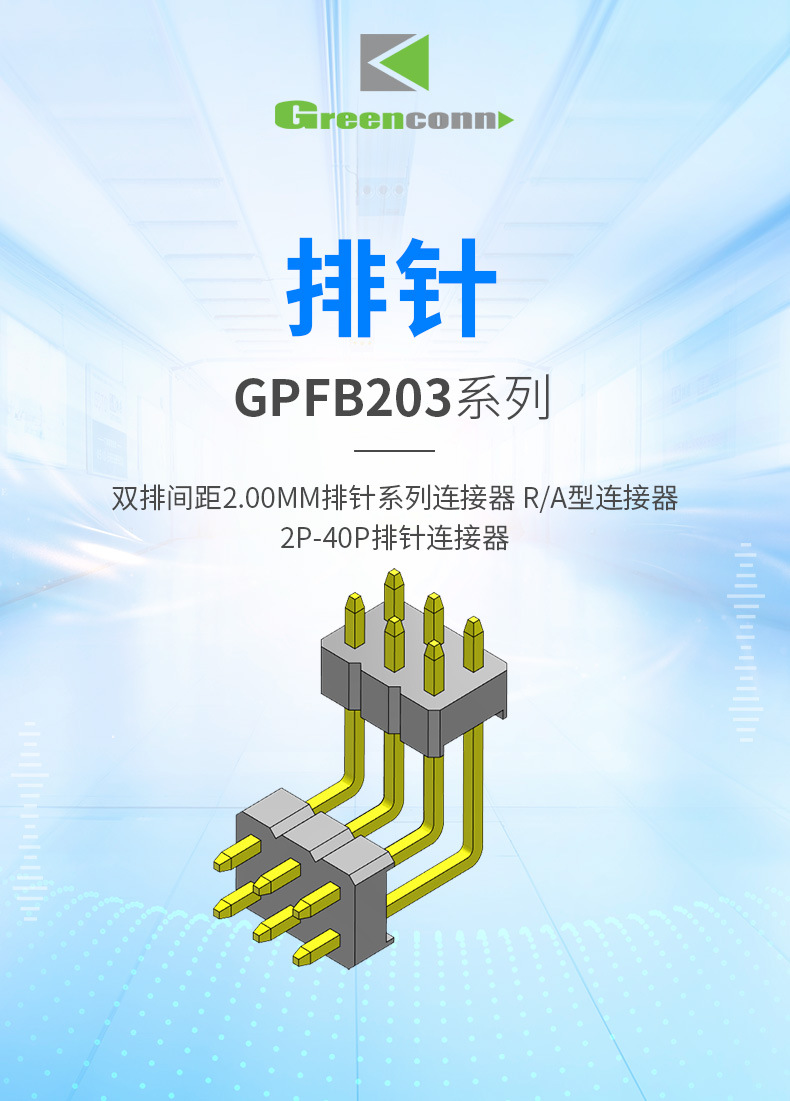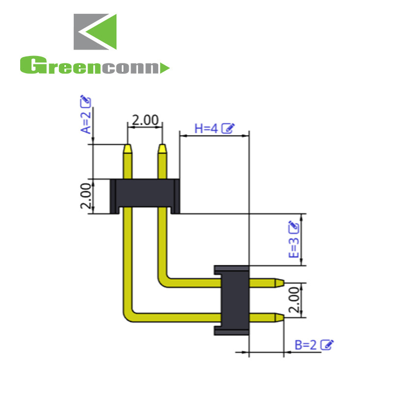 Greenconn连接器间距2.00双排排针连接器系列2p-40p R/A型连接器