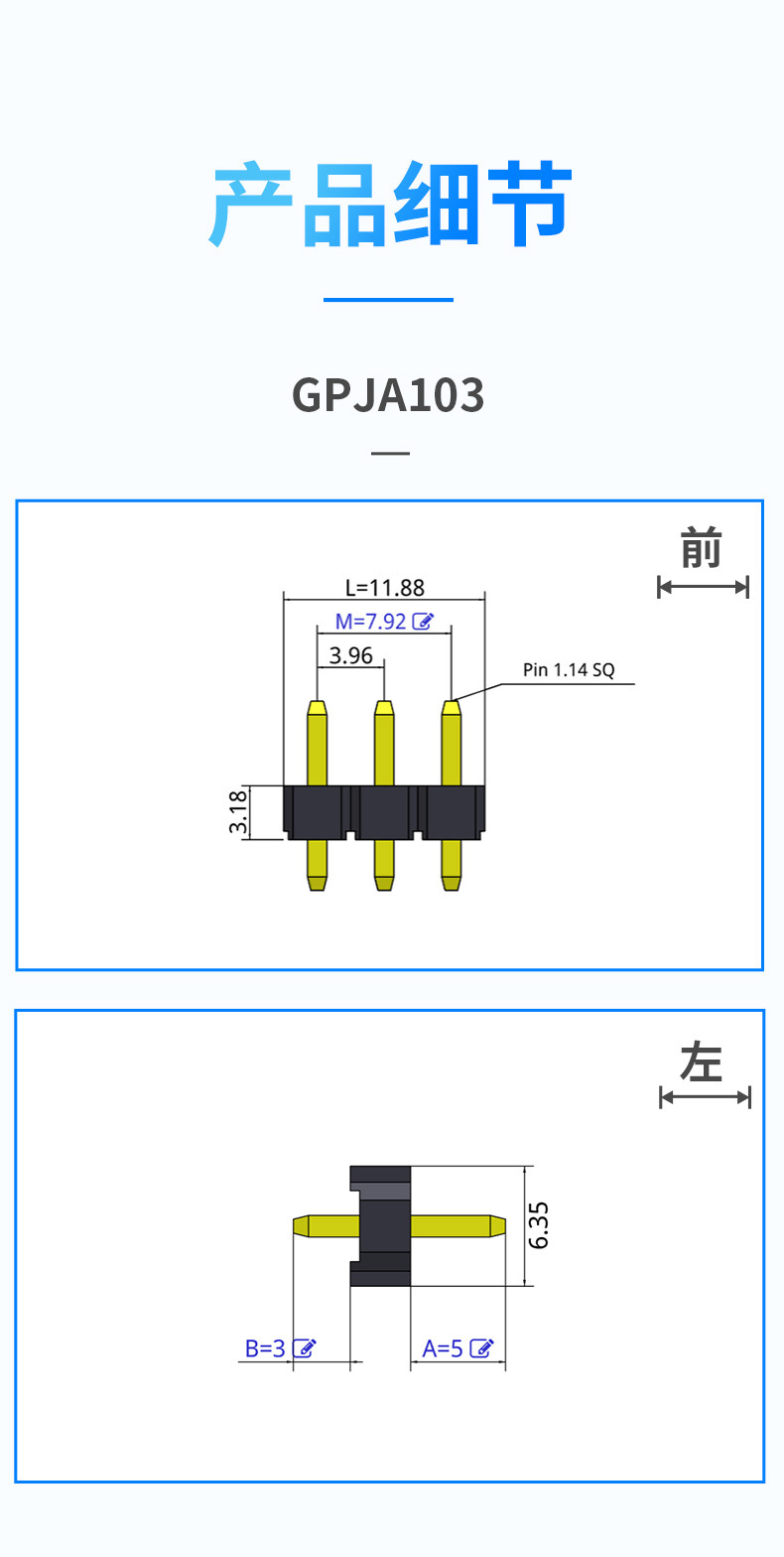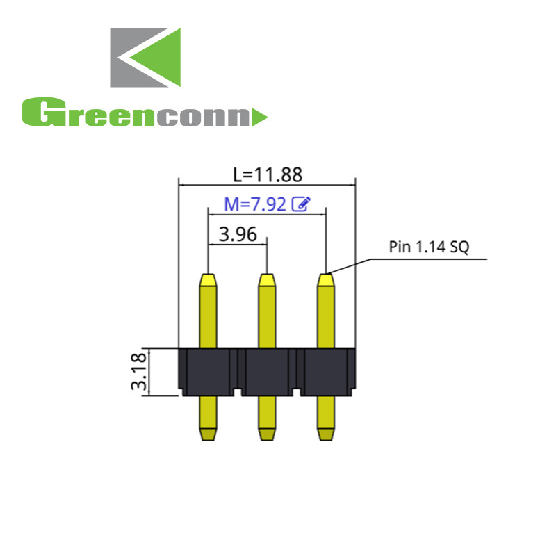 Greenconn排针系列3.96mm单排2p-24p垂直PCB板通孔焊接排针连接器