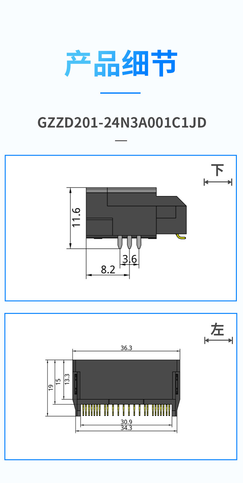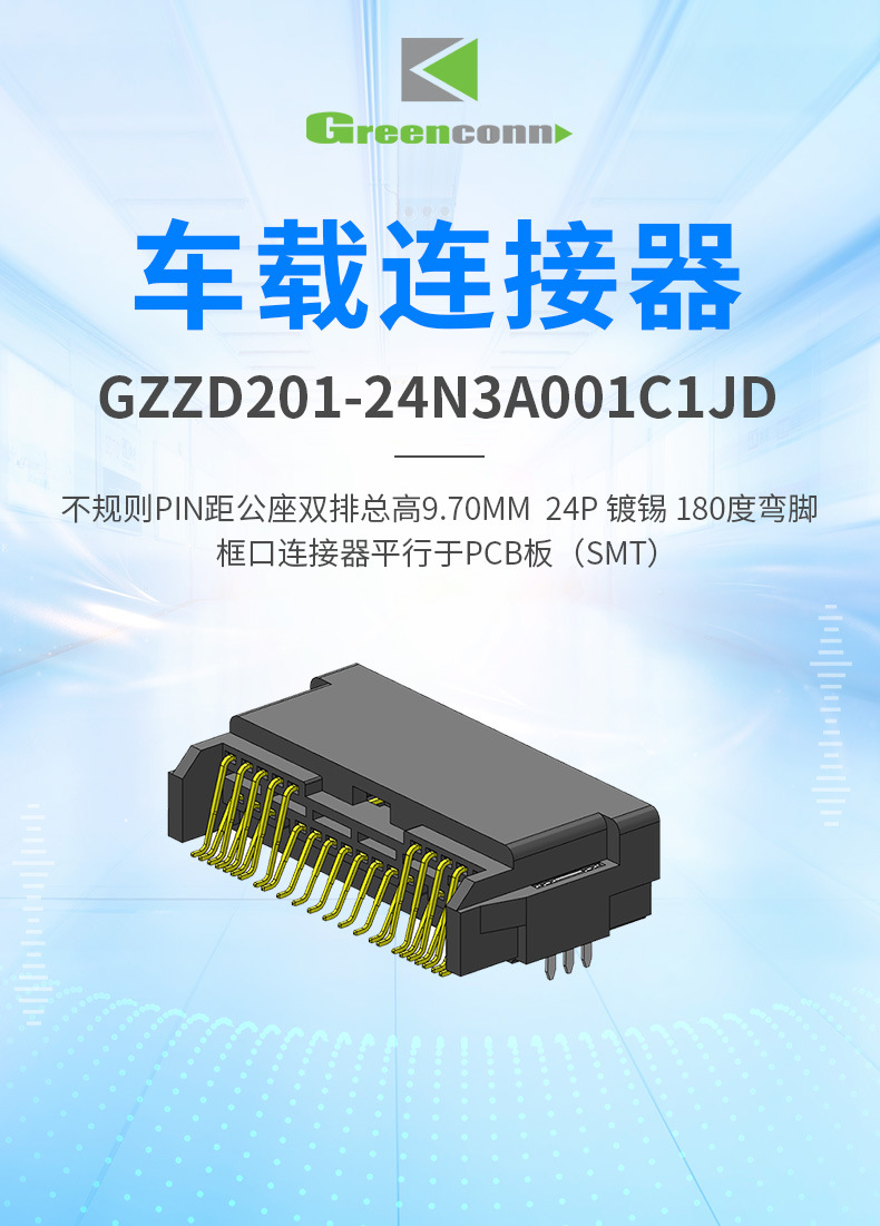 greenconn公座双排高9.70mm24P框口连接器 平行于PCB板车载连接器
