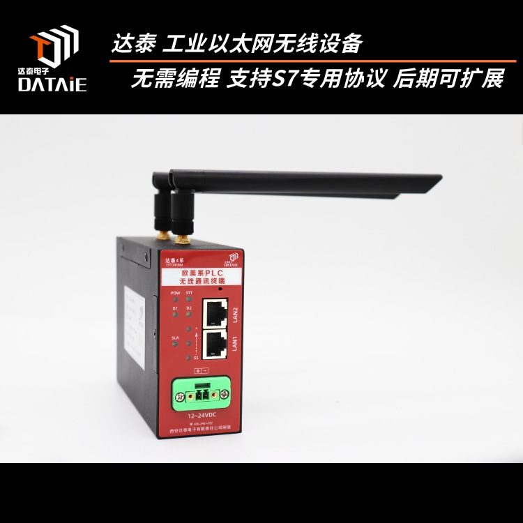 达泰DTD418MB采用 2x2 两发两收无线架构,空中传输速率高达 300Mbps,兼容西门子S7协议、Profinet协议、Modbus TCP/IP等通讯协议,并采用 OFDM 调制及 MINO 技术,使无线可靠传输距离达到1KM范围内均可使用。