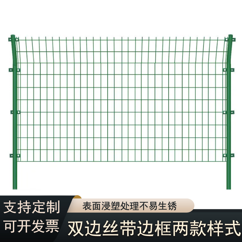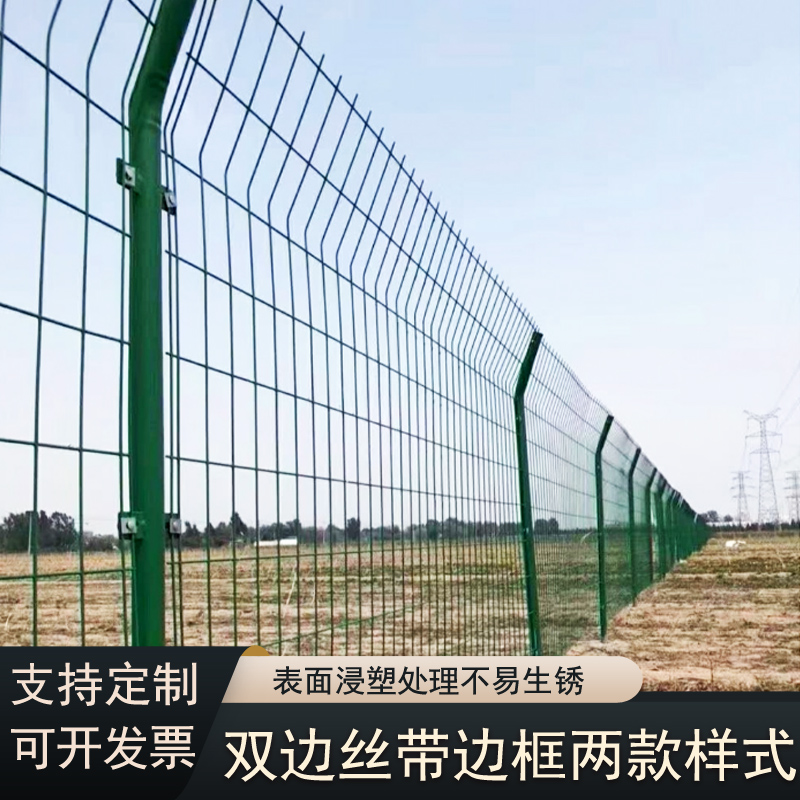 在材质上,这款光伏围栏网选用低碳钢丝。工艺上选用PVC浸塑处理,不仅可以增强抗腐蚀性,无惧风吹雨打、日晒雨淋,能在恶劣的户外环境中长期使用,延长了围栏网的使用寿命,减少更换成本;而且整体网片可以四周在焊接边框增加强度,具备出色的抗撞击性能,阻挡外力对光伏区的破坏,无论是蓄意破坏还是意外撞击,都能轻松应对,为光伏区竖起一道防线。